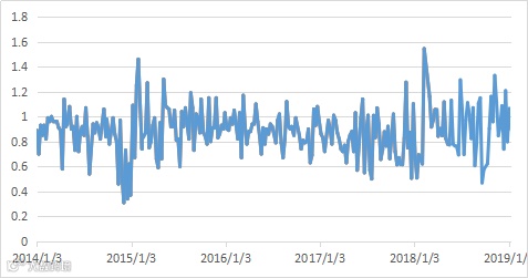 上周集中度指标回升至1以下,反应出市场个股弱于指数的格局。