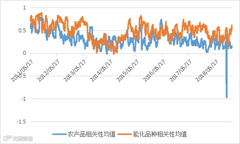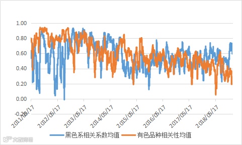 从品种相关性上来看,上周同类品种相关性表现分化,能化品种相关性继续处在高位,有色、黑色系品种相关性降低。