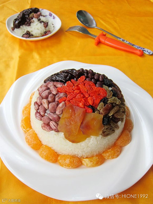 1. 食材:糯米红枣枸杞葡萄干白糖红豆花生哈密瓜脯