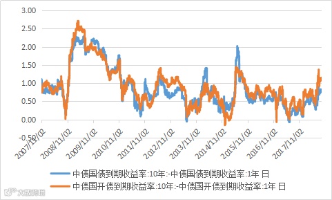 图20 国债及国开债期限利差(10-1)