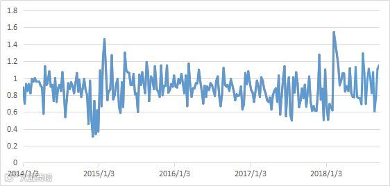 图4 沪深300/中证500 比值