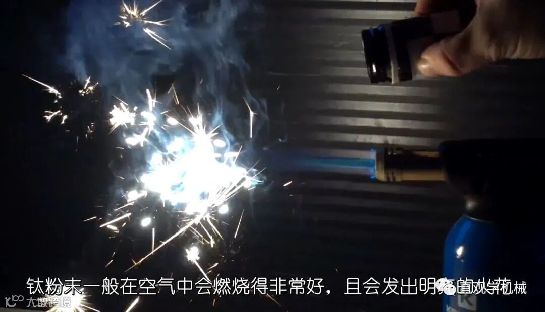 钛切割时会有钛粉燃烧的现象,很危险。大量微小钛粉尘可着火爆炸,因此钛的生产、浇铸、加工应有良好通风防尘设施,及应有防火防爆设备。钛粉的这个特性还被用来制造烟火。