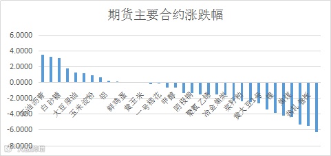 具体品种看,铁矿石、螺纹钢、热卷等黑色品种继续大跌,跌幅居前。只有白糖、豆油等少数农产品品种上涨。