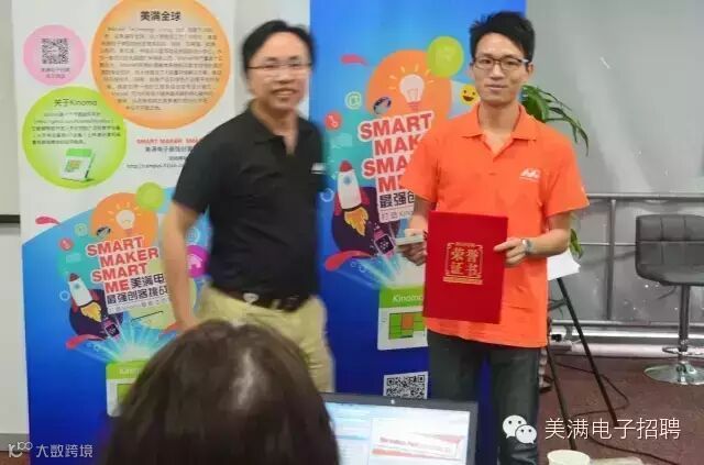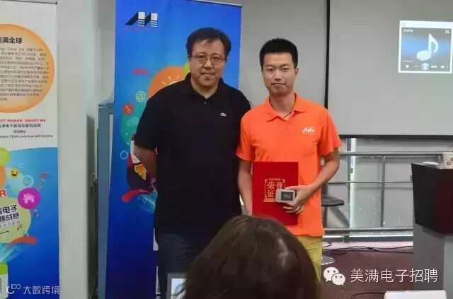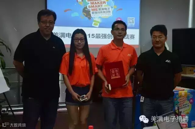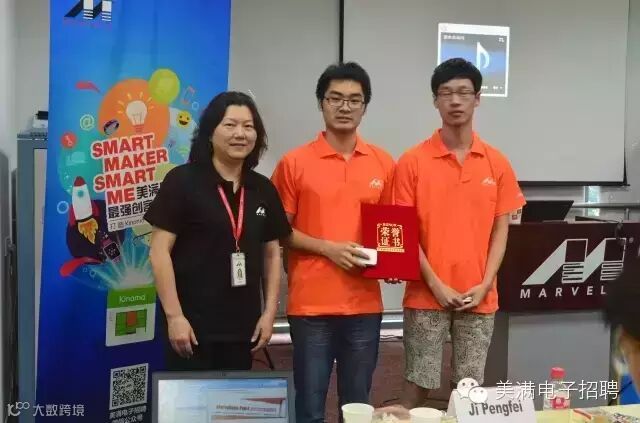 图片中这位站在讲台上,和蔼可亲的女士就是本次比赛的评审团主席Huan姐。她已经在Marvell工作15年啦!她为小伙伴们讲解了美满的历史、产品、人文、福利等等各方面,并从市场及用户体验等角度认真点评每一个作品,可谓干货满满,听得年轻创客们全部入了神。