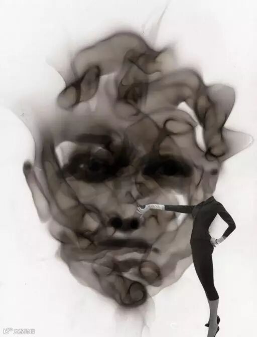 他的创作方式完全是处于偶然,而且这种方式作画没法修改,一般都是不成功便成仁的一次性完成一幅画。在矩形的纸张之间,采用流动性的烟雾作画,就像拿着一只流淌着光影的画笔。创作过程也是随心而动。