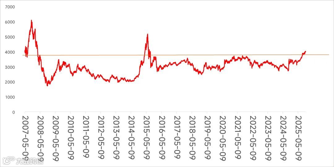 这是2007年5月至2025年11月7日,上证指数走势图,涨幅几乎为零: