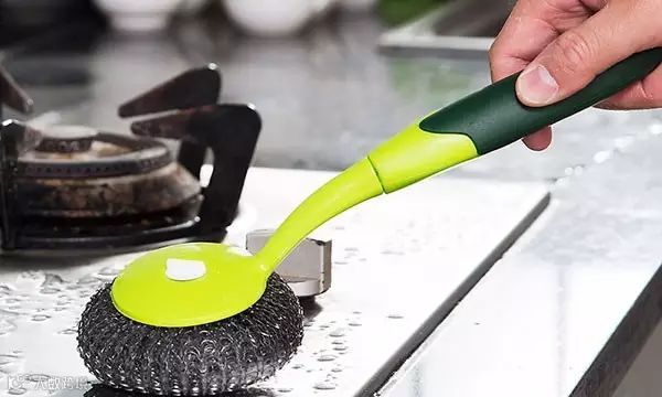 一块滴水的清洁布直接往灶具上抹或者是钢丝球用力刷……