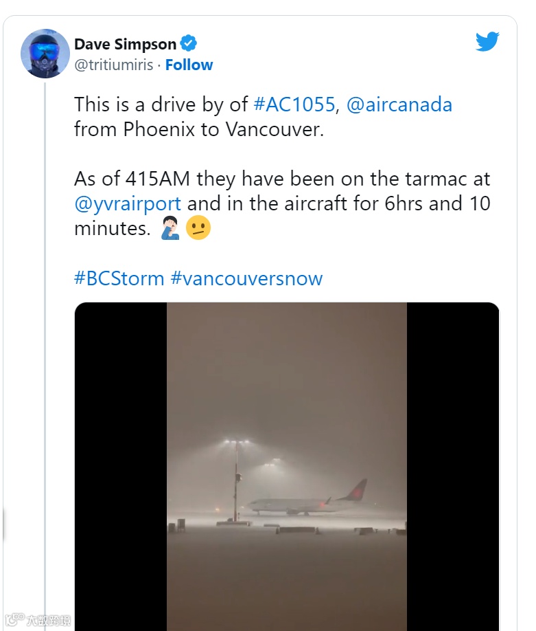 一名叫Seham Asfar的乘客表示:“当我从凤凰城飞到温哥华后,在降落以后,居然等了11个小时舱门才打开,因为要除雪!”