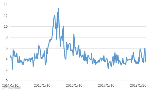 上周股指期货合约贴水率相对稳定。IC远季合约年化贴水率约为8.4%。
