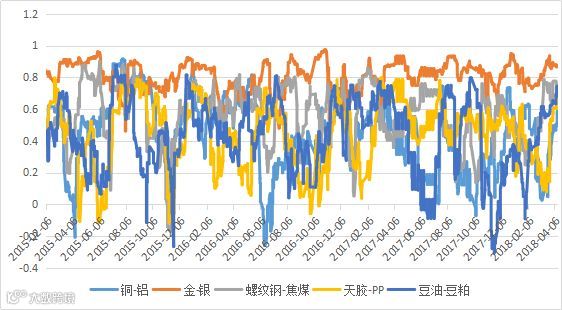 从品种相关性上来看,上周观测的农产品类、工业品品种相关性有所提升,贵金属相关性维持稳定。