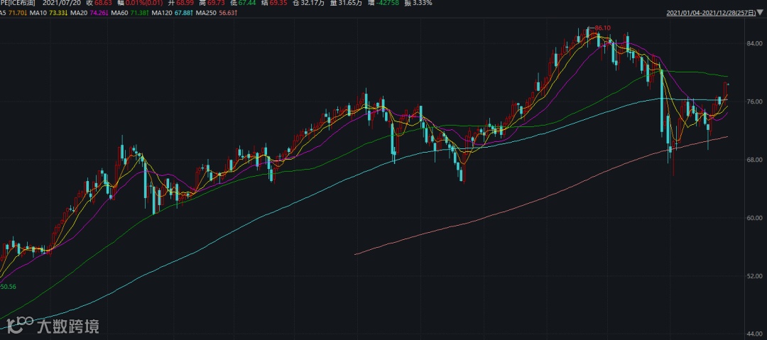 如果以10月21日年内最高86.1美元/桶计算,涨幅达70%。