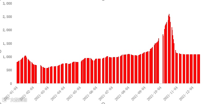 截至2021年12月23日,秦皇岛港动力末煤(Q5500,山西产)由年初的797元/吨,上涨到950元/吨,涨幅近20%。