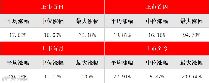 上市首日平均涨17.62%,日涨幅最大的达72%;上市至今平均涨22.91%,涨幅最大的可转债涨了206%。