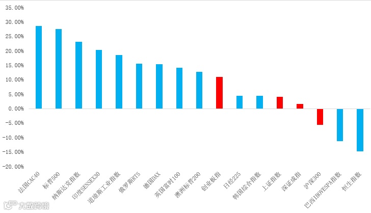全球主要股指今年以来表现
