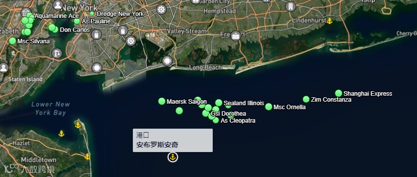 7月26日 纽约和新泽西港锚地集装箱船分布图