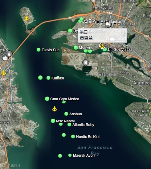 7月26日 奥克兰港锚地集装箱船分布图