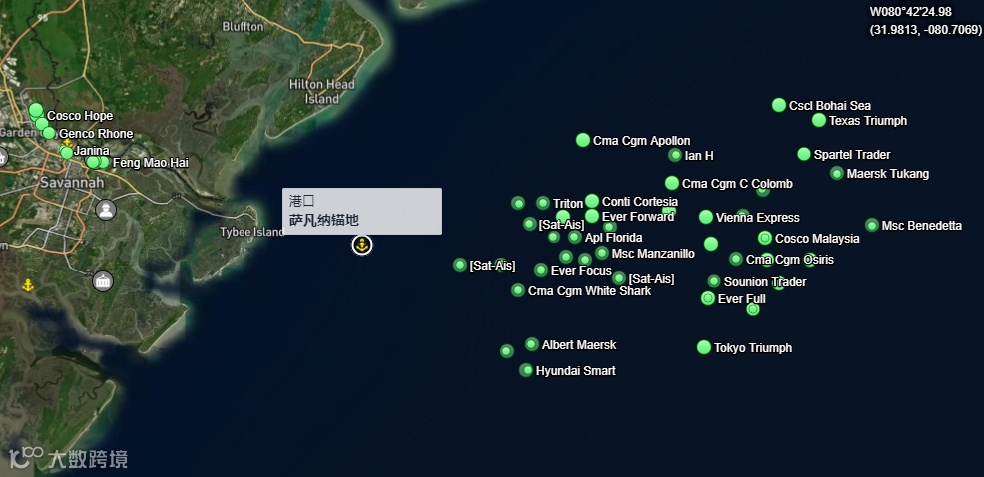 7月26日 萨凡纳港及锚地集装箱船分布图