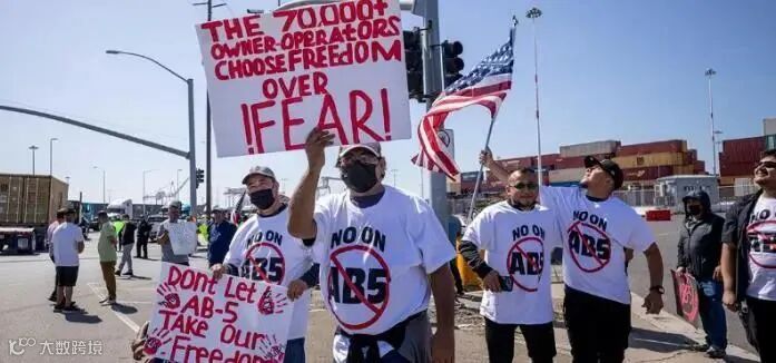 AB5法案让7万名自己打工自己赚的卡车老板被迫成为打工人,这些卡车司机占了整个加州港口卡车司机的三分之二。