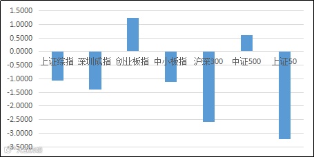 A股下跌,创业板反弹。上周A股延续弱势,上证综指下跌超过1%。但市场分化,风格偏向中小板块。家电、非银、食品饮料等板块继续下挫。上证50大跌超过3%,沪深300下跌2.58%。中证500上涨0.61%,创业板上涨1.23%。市场成交量缩减,中证全指日均成交额略超3600亿元。两融余额维持在万亿以上,沪港通北向资金继续流入。指数日内波动率有所回落。