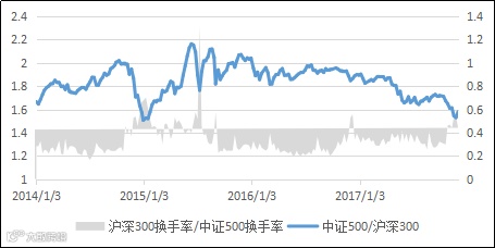 上周集中度指标大幅抬升,表明个股表现强于指数,市场涨跌结构均匀。