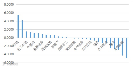 从行业板块来看,钢铁、化工、采掘等周期板块表现较好。家电、非银、银行、食品饮料等权重板块大跌。