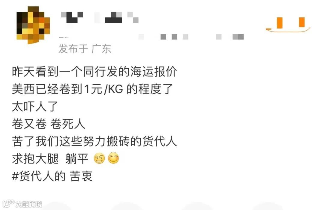 ★货代:市场货量减少,货代陷入“低价内卷”,普船也做限时达,针对热门仓库做特价等,价格低至3块、4块/kg的,比比皆是。