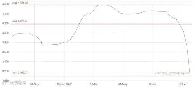 2.租船费率大幅下跌,截至周五,它已一路下跌至3095点,在短短八周内下跌30%,与前一周相比下跌18%。