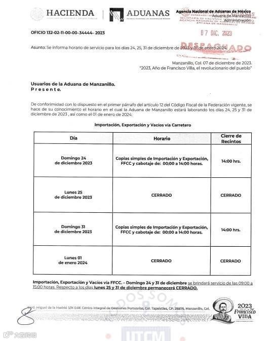 此期间为墨西哥2023年的第二个公众假期,墨西哥国家海关总署的行政手续和程序将暂停。
