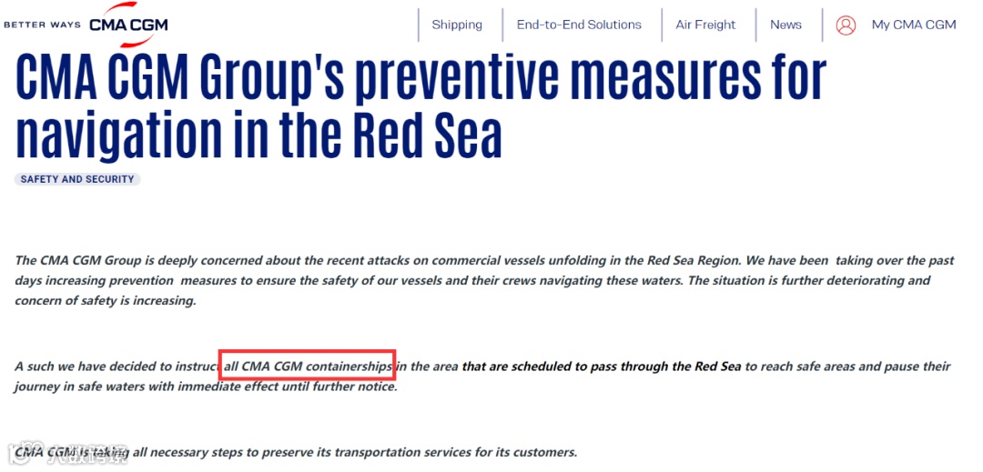 ▲达飞宣布暂停红海航运