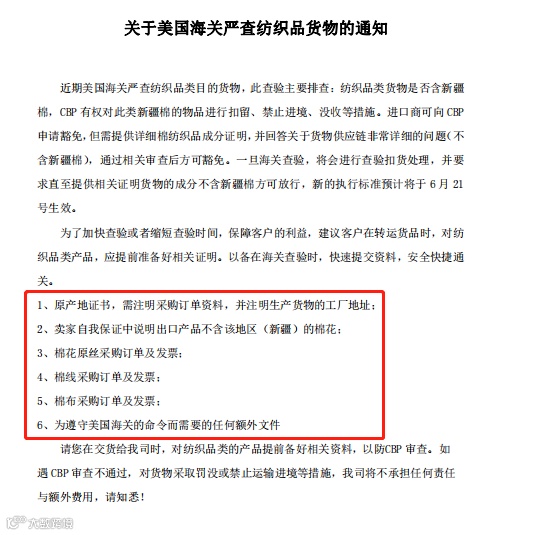 自2022年6月份开始,美国海关会针对从中国进口的棉制产品加强查验,无论是何种贸易条款(LDP/FOB/CIF等),海关均可直接扣押货物。
