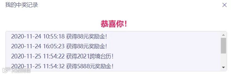 部分用户中奖记录