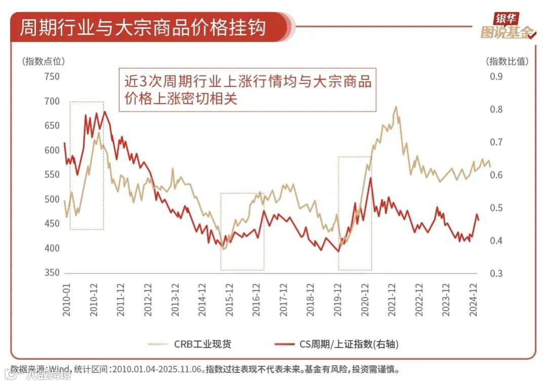 4、周期行业的整体行情基本取决于大宗商品价格走势,价格上涨直接提升企业收入和利润,改善市场预期,从而驱动板块行情走强。