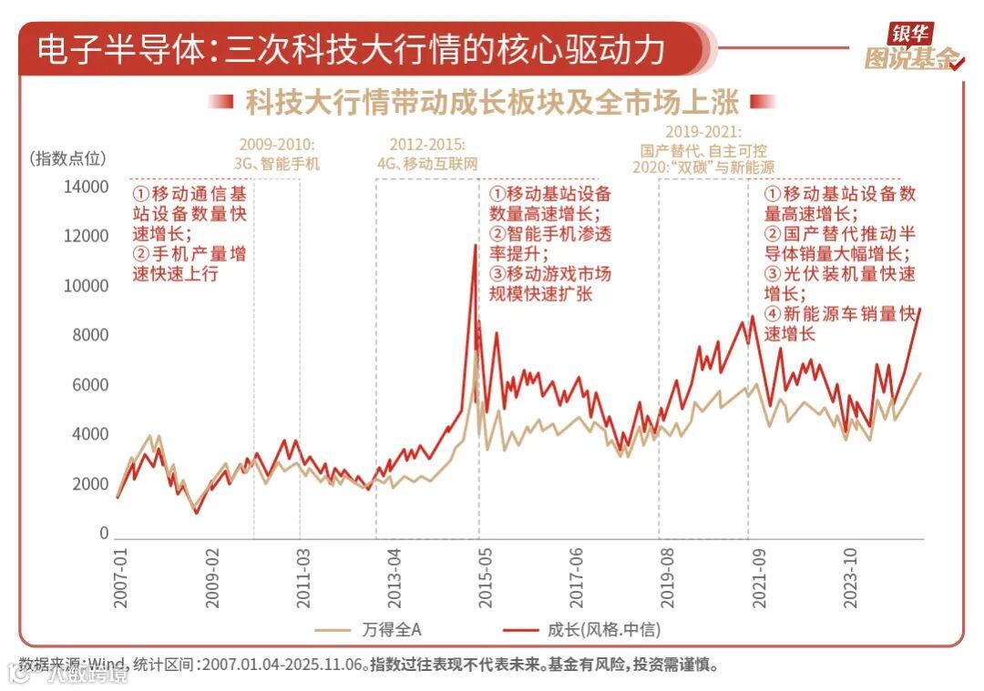 7、电子半导体是科技行业“叙事-资本-业绩”传导周期中最典型的代表。在移动互联网、AI、云计算、新能源等历史上科技成长的大行情中,均有电子半导体的身影。