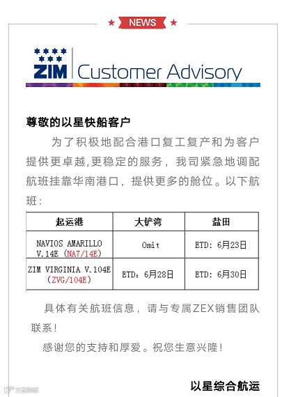 以星快船6月23日/6月26日/7月3日三水船均空班,只有ETD(预计装船时间):6月30日才有大船靠泊盐田接货。