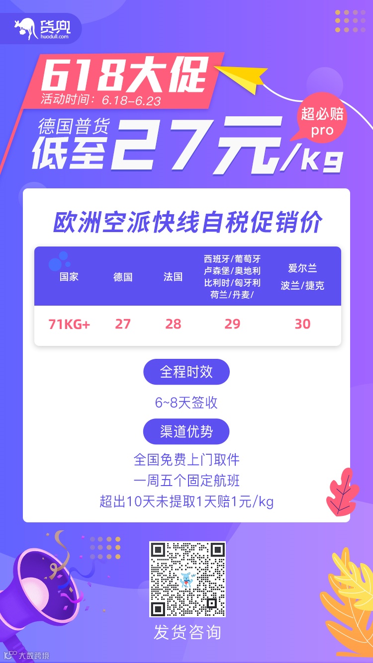 空派价格上涨,泛欧地区包税价格维持在30元左右;