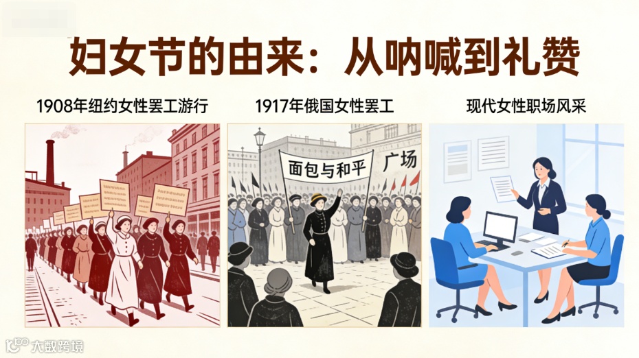 从争取基本劳动权益,到呼吁性别平等、反对歧视,再到今天庆祝女性在各个领域的成就——妇女节的意义,早已超越了节日本身。它是一面镜子,映照出女性地位的变迁;也是一座灯塔,照亮了仍需前行的道路。