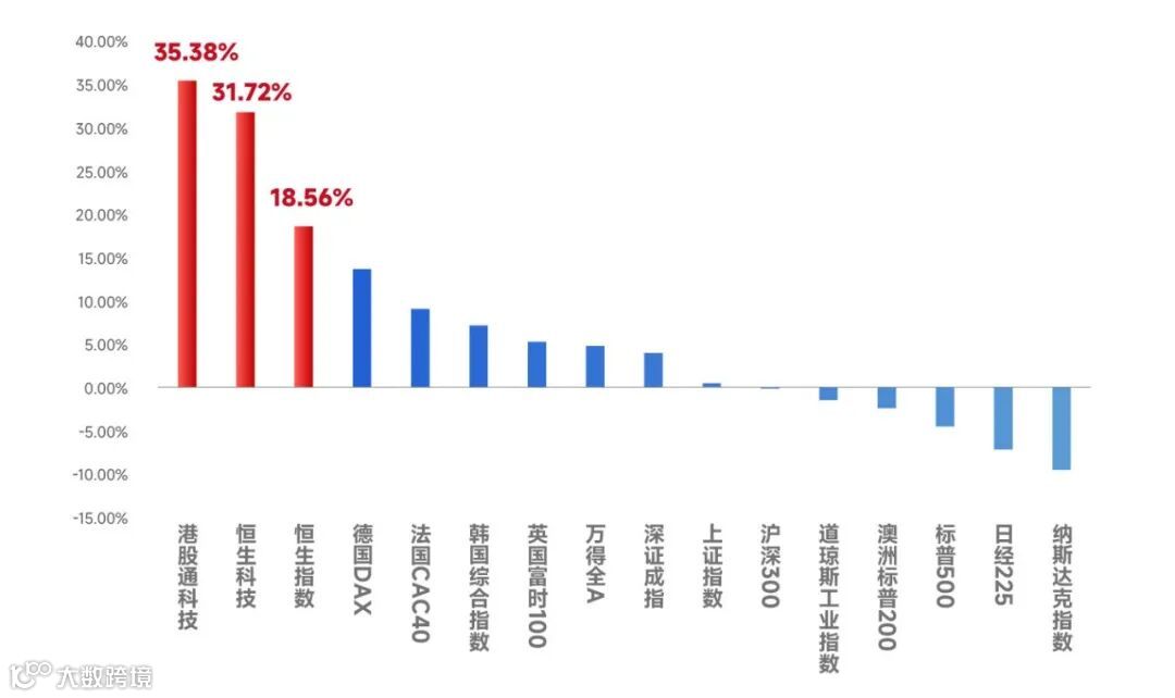 截至2025年3月10日,今年以来恒生指数、恒生科技指数、中证港股通科技指数分别大涨+18.56%、+31.725、+35.38%,在全球重要指数中领先;同期纳斯达克、标普500分别下跌9.54%、4.54%。