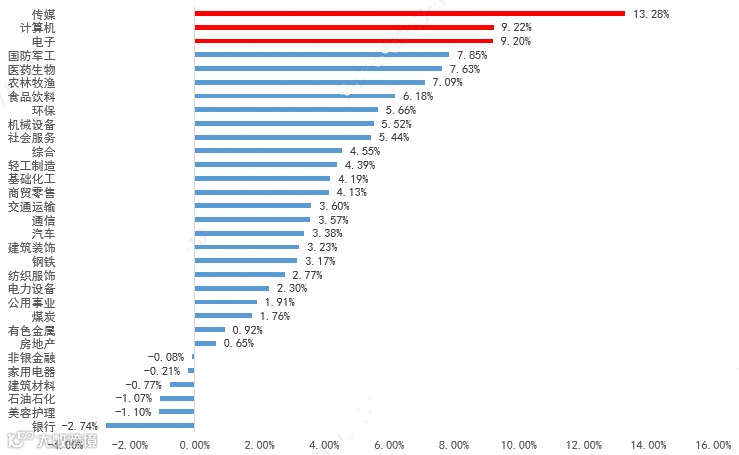 在这轮反弹中,传媒、计算机、电子等科技赛道表现最为突出。