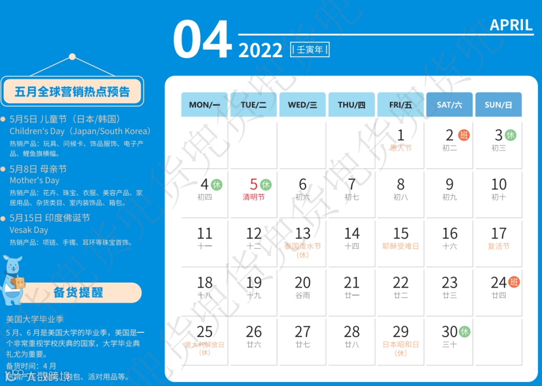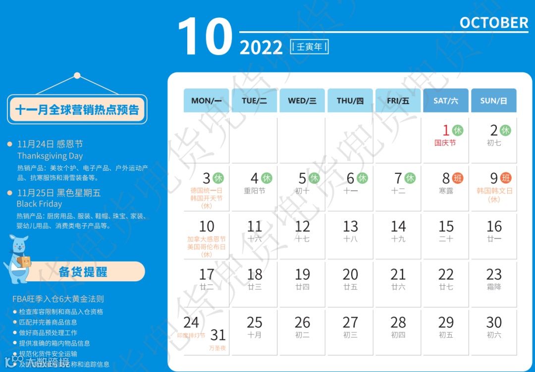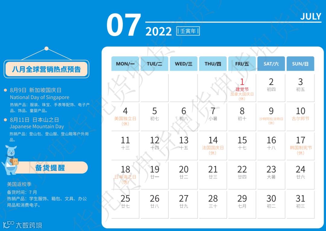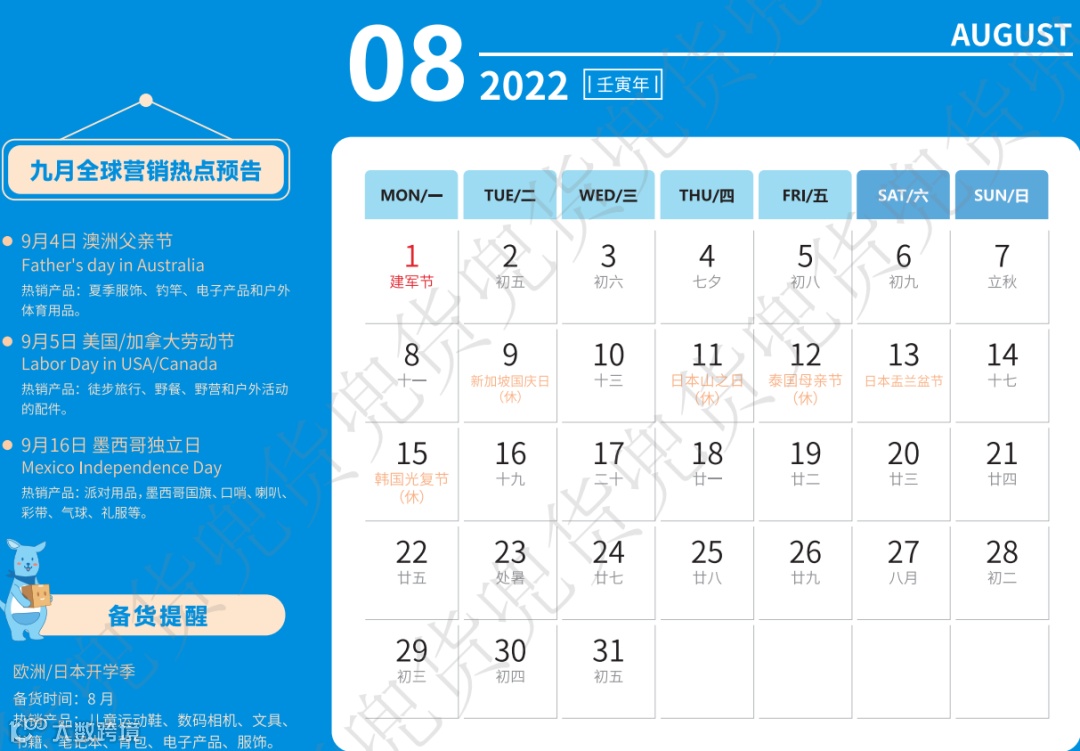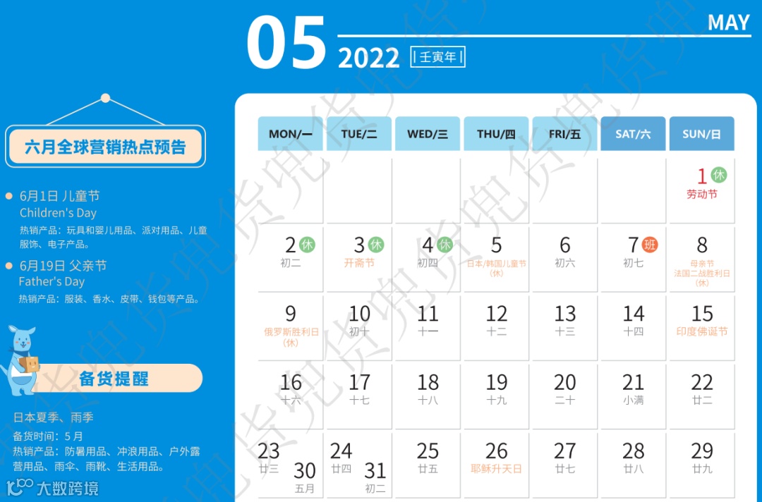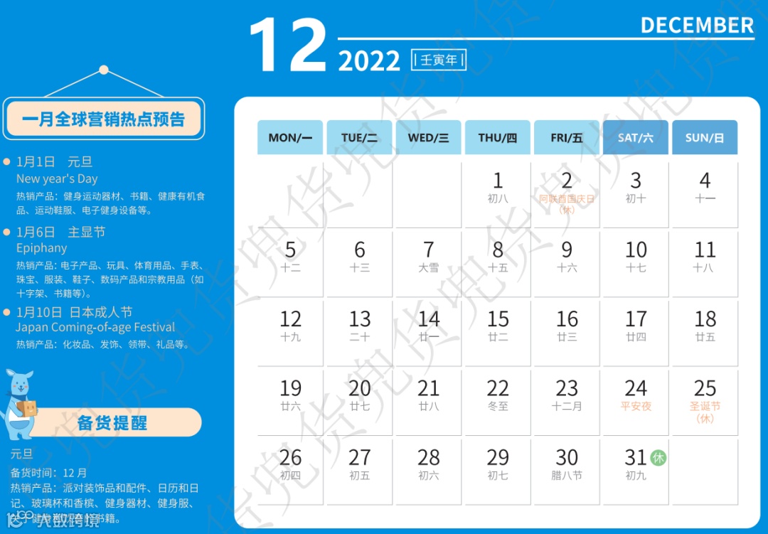 2022年跨境电商专属台历来了!