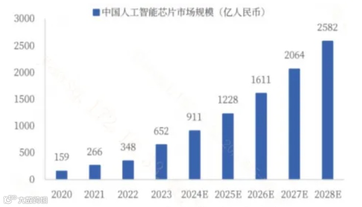 图:中国人工智能芯片市场规模持续增长