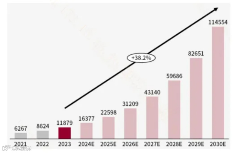 图:全球AI基础设施市场快速提升(亿元)