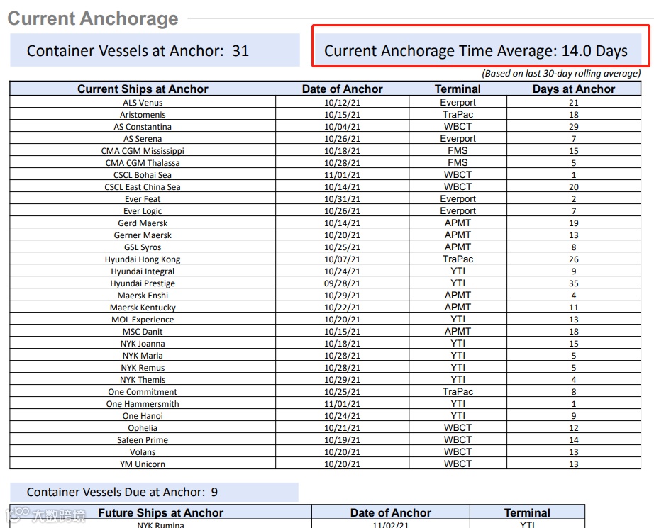(洛杉矶港货船平均等待靠泊时间长达14天)