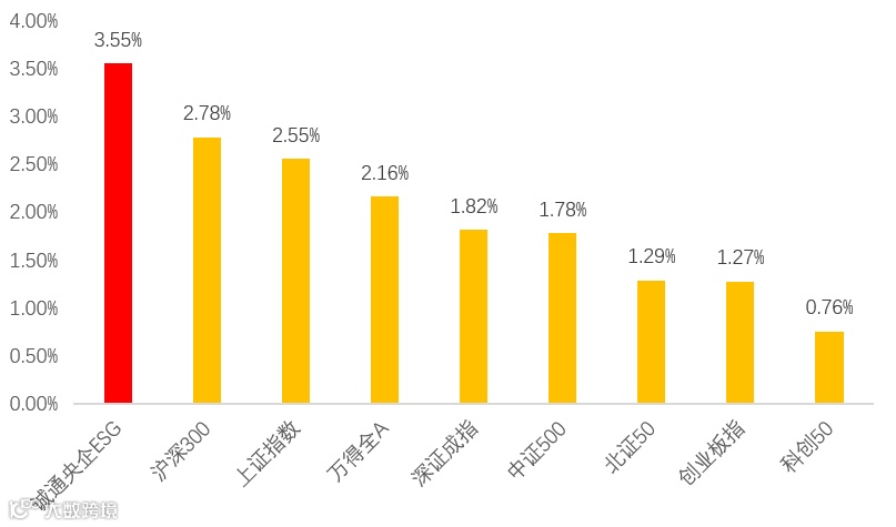 今年前三季度,诚通央企ESG指数的表现(+22.75%)也领先于其他ESG主题指数。
