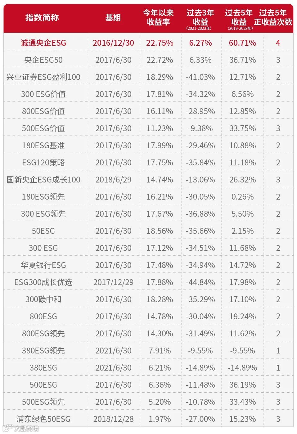 截至2023年末,从过去3年、过去5年的收益看,中证诚通央企ESG指数均表现较好。