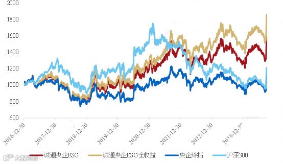 诚通央企ESG指数的表现也显著优于代表央企上市公司整体的央企综指。