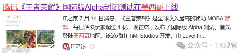 这也难怪,王者荣耀国际版Alpha测试先登录的是墨西哥地区!敏锐程度还得看小马哥!