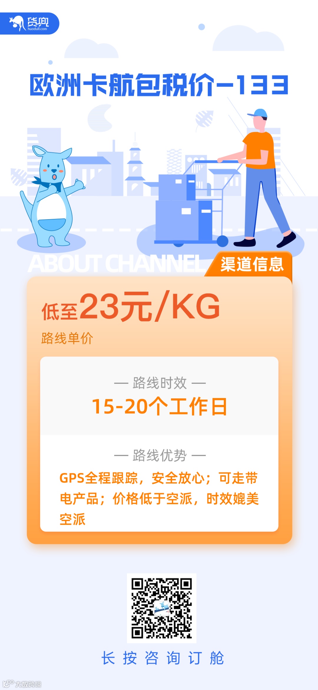对此,货兜特别推出“中欧卡航推广周”活动,帮助卖家以媲美空派的时效,低于空派的价格,稳定、安全、高效出货!