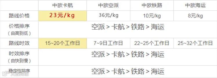 综合以上要素,卡航的时效、价格和稳定性是以上所有渠道类型中性价比较高的渠道。