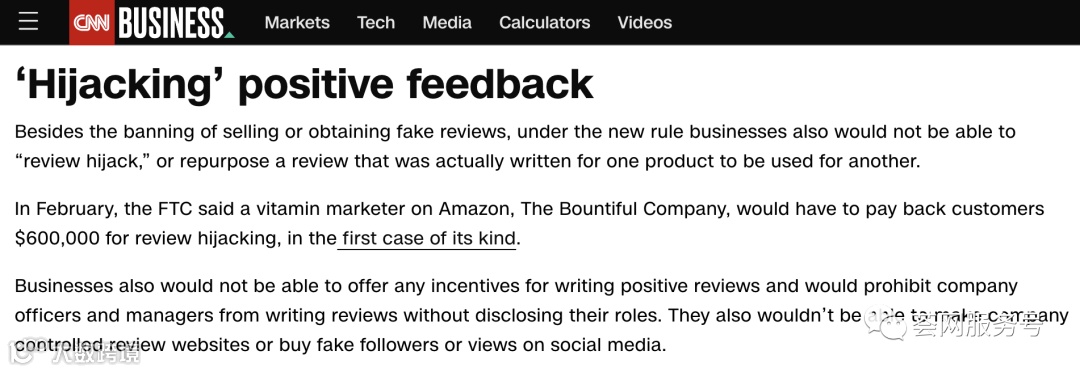 而第一个被处罚的对象不是中国卖家,却是美国一家非常知名的保健品品牌,原因是因为他们在2021-2022年对其商品评价进行了违规合并。FTC要求这家公司给消费者赔偿60万美金,约合430万人民币。