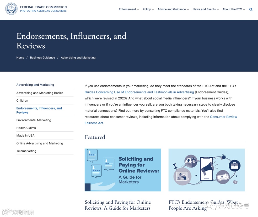 时刻关注FTC网站的政策变化,https://www.ftc.gov/,特别是导航条中Enforcement(执法)中的各项规定